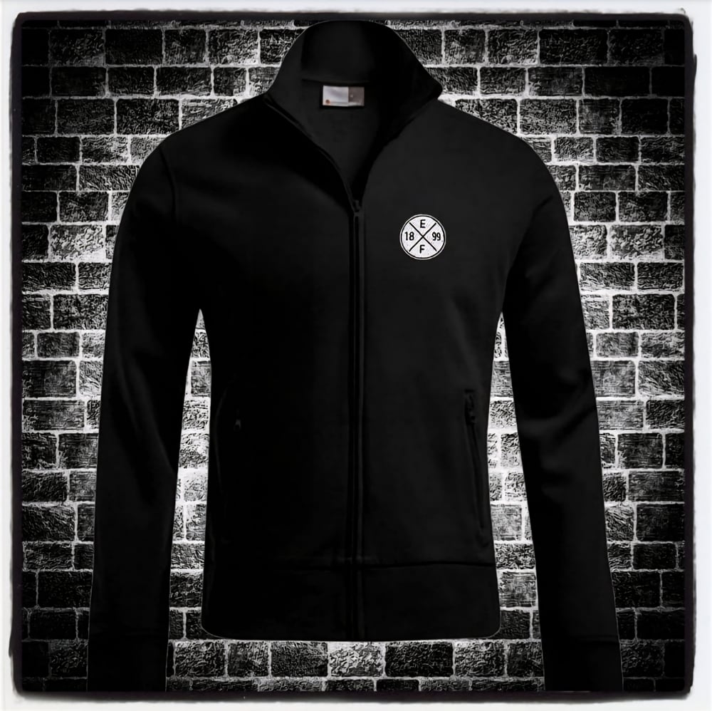 SALE: Schwarzer Zipper ohne Kapuze, hochwertig bestickt.